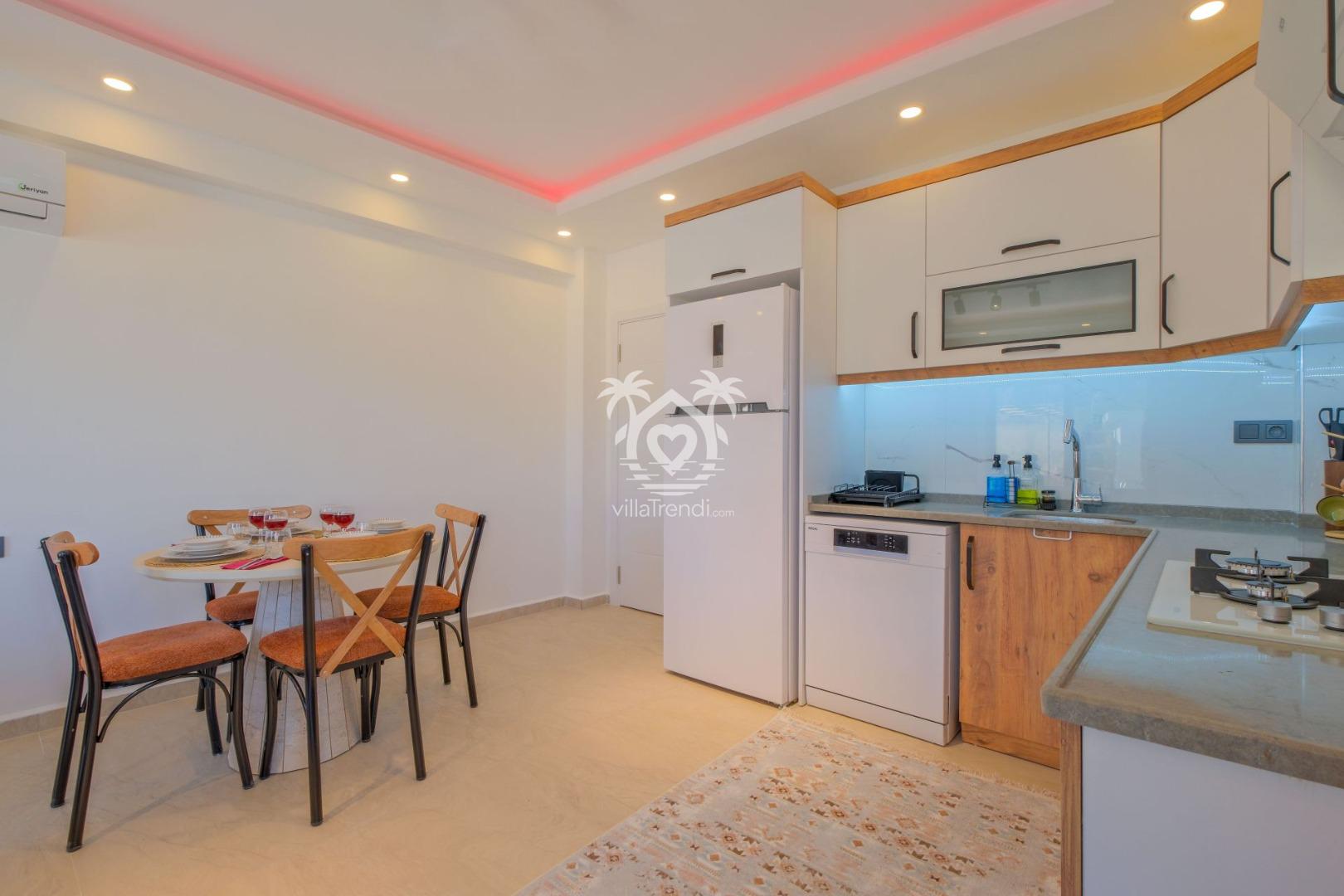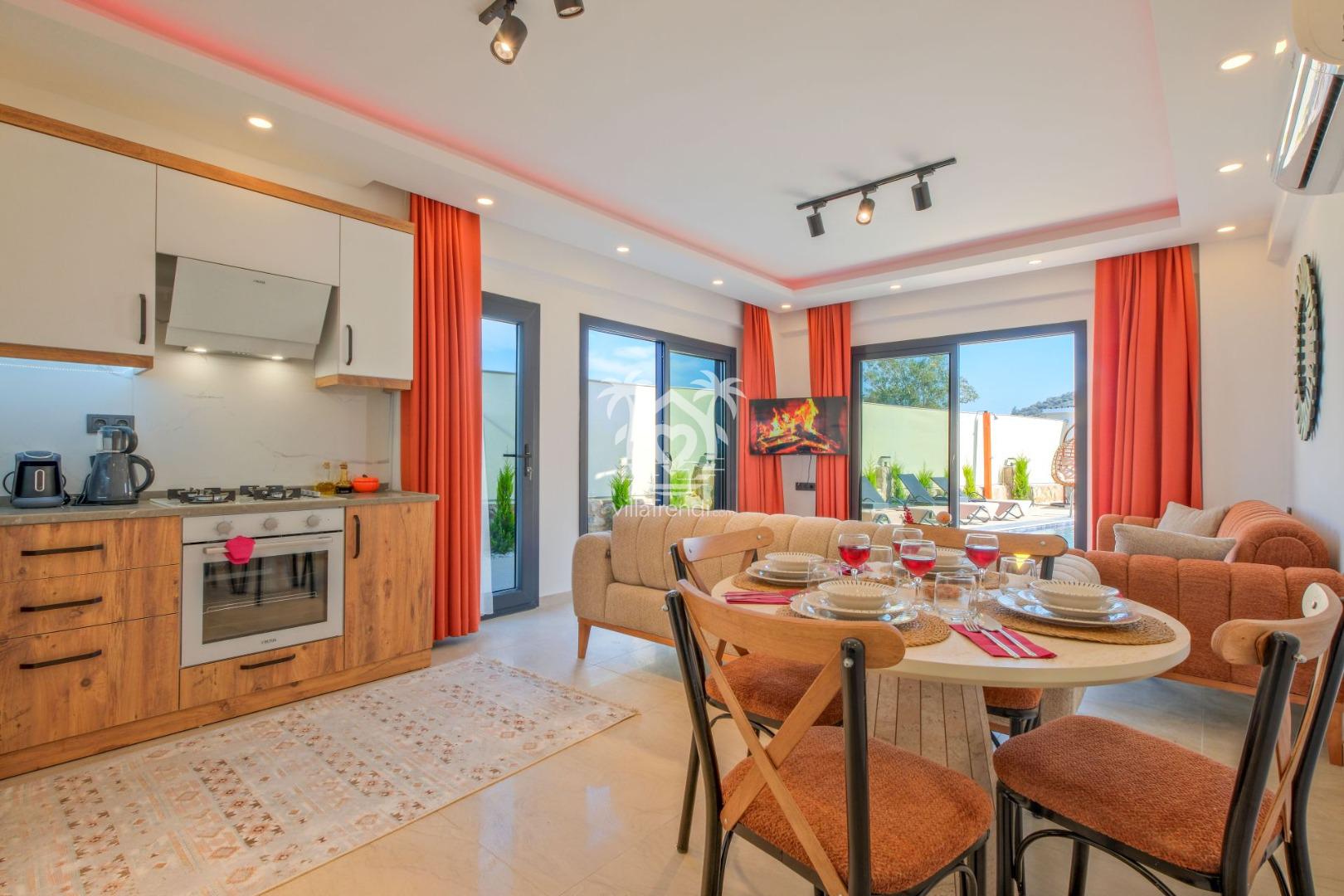 Ferah Yaşam Alanı: Yüksek tavanlı salonu ve ankastre cihazlarla donatılmış geniş mutfağı ile tatil boyunca ihtiyacınız olan her şey elinizin altında. 🍳🛋️
