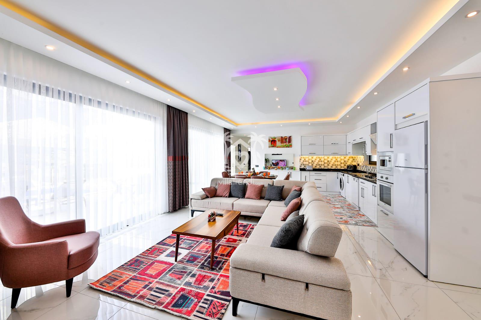 Salon: Modern ve şık dekore edilmiş salonumuzda konforlu bir oturma grubu, TV, DVD oynatıcı ve klima yer alır; buradan havuz terasına kolayca geçiş yapabilirsiniz. 🛋️🎬